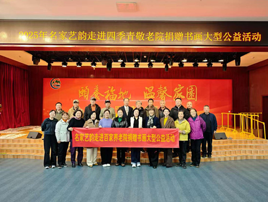 2025年11月13日上午,“名家艺韵走进百家养老院捐赠书画大型公益活动”走进北京市海淀区四季青镇敬老院,为这里的老人们送去了一场文化与爱的盛宴。39位书画家精心创作的作品,加之现场老师即兴挥毫的墨宝,共计五十幅书画佳作,成为了连接传统文化与养老事业的纽带。这些作品或笔力苍劲、或意境雅致,不仅是艺术的呈现,更是对老年群体精神文化生活的深切关怀。活动现场,四季青镇敬老院院长简晓慧及全体工作人员对公益团队的到来表示了热烈欢迎。当一幅幅蕴含着祝福与温度的书画作品被展示、捐赠时,现场洋溢着温暖的氛围。书法家们还与老人们互动交流,在笔墨挥洒间,让老人们近距离感受中国书画艺术的魅力,丰富了他们的精神文化生活,提升了幸福感与归属感。参加此次捐赠书画作品的艺术家名单有:名家艺韵走进百家养老院捐赠大型公益活动发起人慈善艺术家金凤女士,著名影视表演艺术家孙桂田女士,启功先生的弟子著名书法家马明先生、著名画家张来林女士、著名书画家杜清文女士、书法家杨志鹏先生。军旅书法家郭二愣先生、警界书法家范景泉先生、军旅画家俞朝富大校、军旅书画家刘红敏女士、军旅书法家俞志千大校、原武安美协副主席秦博先生、军旅书画家宋一丁大校。军旅书法家黄海大校、书法家黄美红女士、左手画名家魏更良先生、军旅书法家欧秀刚先生、书画家刘美丽女士、霍春阳弟子、青年画家李奕博先生、著名书画家程秀荣女士、北京市通州区书协副主席王东生女士。军旅书法家朱小保先生、军旅书法家马文祥先生、军旅书法家韩学成先生、著名书画家中美协会员顾春利先生、南京师范大学毕业的美术教师郭义胜先生、启功先生弟子、鉴赏家、著名书法家战国权先生、军旅书画家李建军先生、军旅书法家刘春玲女士、军旅书法家潘涛女士、军旅书法家张增强先生、著名书画家谷春明先生、军旅书法家刘建武大校、书画家高露华女士、书法家张建强先生、著名花鸟画家黄蕾女士,军旅书法家黄天文先生,军旅书画家赵云华女士,军旅书法家吴胜花女士共计三十九位艺术家。“名家艺韵走进百家养老院”捐赠书画大型公益活动,在金凤女士的带领下,以书画为载体,在传播中国传统文化的同时,更践行了关爱老年群体的社会责任。它让传统文化的精髓在养老场景中生根发芽,为“文化养老”注入了新的活力,也让老人们在艺术的滋养中,享受到了更具品质的晚年生活。