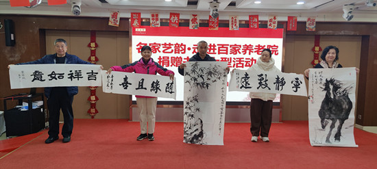 “名家艺韵”在金凤女士的带领下从第1家到第65家的公益足迹在养老机构间延伸,39人的参与、让每一次捐赠都成为一次爱的续航。参加此次捐赠书画作品的艺术家名单有:名家艺韵走进百家养老院捐赠大型公益活动发起人慈善艺术家金凤女士,著名影视表演艺术家孙桂田女士,启功先生的弟子著名书法家马明先生、著名画家张来林女士、著名书画家杜清文女士、书法家杨志鹏先生。军旅书法家郭二楞先生、警界书法家范景泉先生、军旅画家俞朝富大校、军旅书画家刘红敏女士、军旅书法家俞志千大校、原武安美协副主席秦博先生、军旅书画家宋一丁大校。军旅书法家黄海大校、书法家黄美红女士、左手画名家魏更良先生、著名书画家张亚祥先生、军艺毕业的艺术教师白子上女士、军旅书法家欧秀刚先生、书画家刘美丽女士、霍春阳弟子、青年画家李奕博先生、著名书画家程秀荣女士、北京市通州区书协副主席王东生女士。军旅书法家朱小保先生、军旅书法家马文祥先生、军旅书法家韩学成先生、著名书画家顾春利先生、启功先生弟子、鉴赏家、著名书法家战国权先生、军旅书画家李建军先生、军旅书法家潘涛女士,书法家黄美红女士、著名书画家谷春明先生、军旅书法家刘建武大校、书画家高露华女士、书法家张建强先生、军旅书法家张增强先生、军旅画家赵云华女士、军旅书画家吴胜花女士、军旅书法家黄天文先生、共计三十八位艺术家。艺术本就有治愈人心的力量,当它走进养老院,便化作了慰藉银发心灵的暖流——是让长者在笔墨丹青中重拾审美愉悦,是为他们的生活空间添一抹雅致,更是在全社会传递“尊老、爱老、助老”的公益火种。