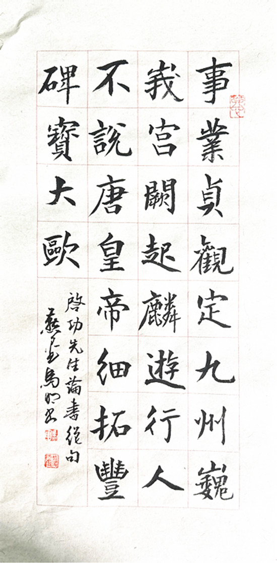 著名书法家马明,毕业于北京师范大学艺术系书法专业。在校学习期间得到书法大师启功先生的教诲与指导。现为中国北京书法家协会会员,中外名人艺术院研究员,中国农工民主党中央书画院理事,北京市农工党市委东方书画研究会艺委副主任,新华艺术网执行副主席、北京东城书画协会副主席,名家艺韵爱心团队慈善艺术家。