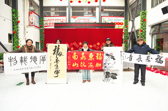 2026年1月25日,10位艺术家老师亲临现场,挥毫泼墨、妙笔生花,一幅幅饱含新春祝福的福字、春联,一帧帧意境隽永的书画作品跃然纸上,不仅为老人们送上了满满的文化惊喜,更让墨香与温情填满敬老院的每个角落。