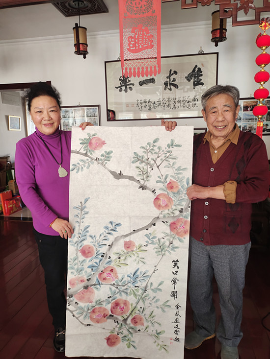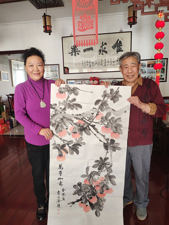 今天,是“名家艺韵在线”开工的日子。我带着满心的敬意与期待,再次拜访这位德艺双馨的艺术家李文启先生。李老师依旧是那身熟悉的酒红色开衫,笑容温暖,眼神里藏着岁月沉淀的智慧。他没有过多的寒暄,便拿起了笔,为我绘制的拙作一一题字。“萬事如意”“笑口常開”“紫氣東來”“碩果累累”“厚德載福”……每一个字都力透纸背,每一笔都饱含着对后辈的期许与支持。当我们共同举起那幅《萬事如意》的柿子图时,我仿佛看到了这二十六年公益路上,无数个这样温暖的瞬间。