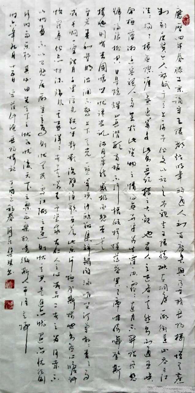 在历经了40余年大量艰辛的书法创作探索实践后,曹老师对书法艺术有了极为深刻的领悟,凭借不寻常的借鉴力与创造力,以自己的卓异才情形成了一种属于自身的通透靓丽、飘逸洒脱、行云流水、气呑江河的笔墨风格。赏其行书与行草书作,意法布局上各具其形、各呈其势、各尽其美,尺幅之间又如江河奔腾、气势夺魄、古朴浑厚,充分表现出一种道法自然的境界,也给观者一份妍美、刚劲的特有魅力视觉感受。