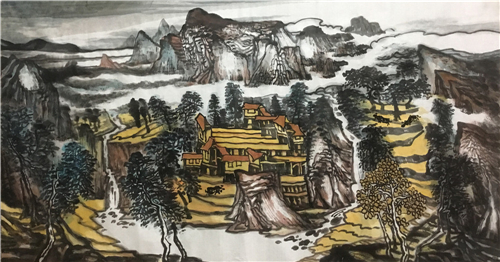 综观姚厚武的系列作品,发现其呈示出的既是传统面貌,又由传统风格转向意向形态,即在具象与抽象之间借助笔墨,情感溶入写心写意的味道,从而在继承中求创新,在冲突中求融合,使笔墨的情感张力达到和谐统一。中国画作为传统的视觉表现形式,其独具的艺术审美价值又是其它画种所不能取代的。画家寄情山水,以肆意的笔墨,洒脱的笔法去勾勒理想的山。这也是姚厚武能在山水画领域取得成绩的关键所在。