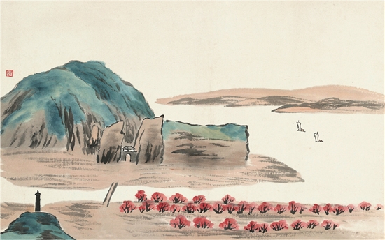 | 齐白石 借山图之十六 30×48cm 纸本设色 1910年 北京画院藏 |