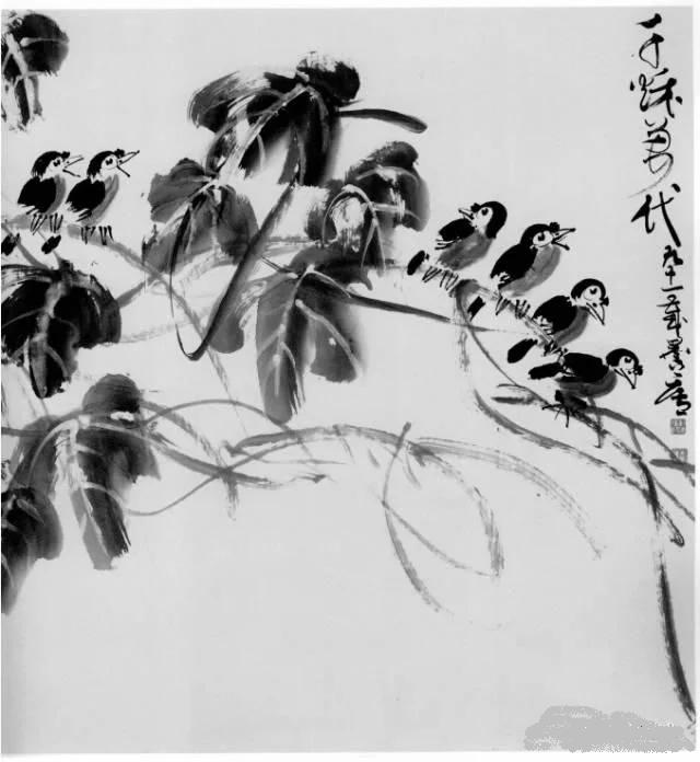 许老师的用笔,我称之为“方笔法”。他的线条是方的,用墨块造型也是方的,有一种现代造型意识和美感。
