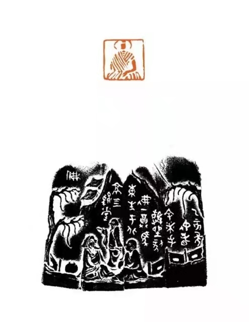 邊款:余曾多次遊覽洛陽龍門石窟,那氣勢宏偉、雕琢精美的佛造像實為壯觀,憶刻其意。丁亥年雪月,馬東生刊石並記於北京。