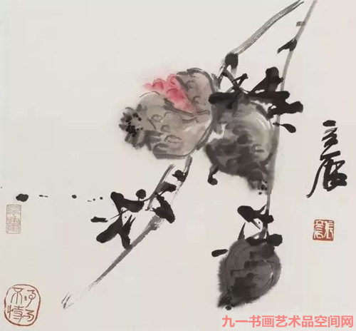 张立辰则既能在不断地读书行路观察自然中师造化养浩气,又善于调动幼年生活的深切感受与动人回忆,更善于在笔墨与形象的互动中抒写情怀。所以他每以淋漓酣畅、不与人同的笔墨描写粗枝大叶的瓜果,把天骨开张、势足力大和感受精微结合得不露痕迹,粗中而有细,气旺而情长,可谓“出新意于法度之中,寄妙理于豪放之外”。写意画的笔墨既有象物的效能,又有传情的功用,为了表现个性的鲜明、抒发感受的强烈,甚至于可以夸张变形。张立辰不但充分继承了这样的优良传统,而且按照自己的艺术个性强化了笔墨节奏,极尽轻重、浓淡、干湿、虚实对比之妙。更为可贵的是,他在注重起承转合、呼应顾盼的抒情笔墨中,巧妙地引进了西方现代艺术中的平面构成意识,形成笔墨构成的理论与实践。
